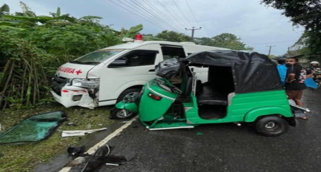 முச்சக்கரவண்டி – நோயாளர் காவு வண்டி நேருக்கு நேர் மோதி விபத்து.!